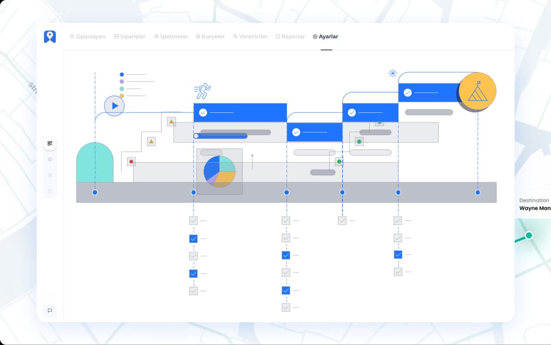 Yapay zeka destekli rota planlama yazılımımızla tanışın. Bu yenilikçi çözüm, en uygun kuryeyi en uygun paketle buluşturarak teslimatları optimize eder ve iş gücünden tasarruf sağlar.